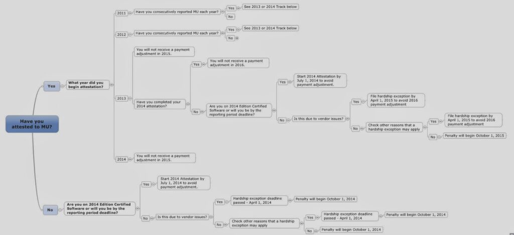 So, how does CMS determine who the 2015 adjustments apply to? In order to avoid the adjustments, EH’s must demonstrate MU prior to the 2015 fiscal year. This means they have either attested to MU successfully in the 2013 reporting year or the 2014 reporting year.