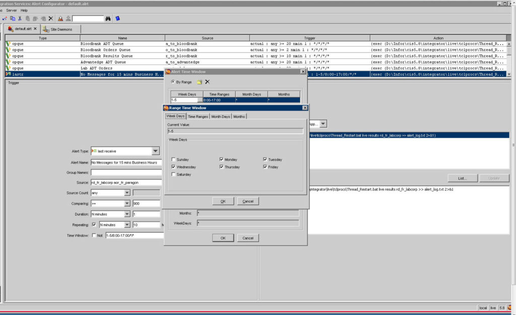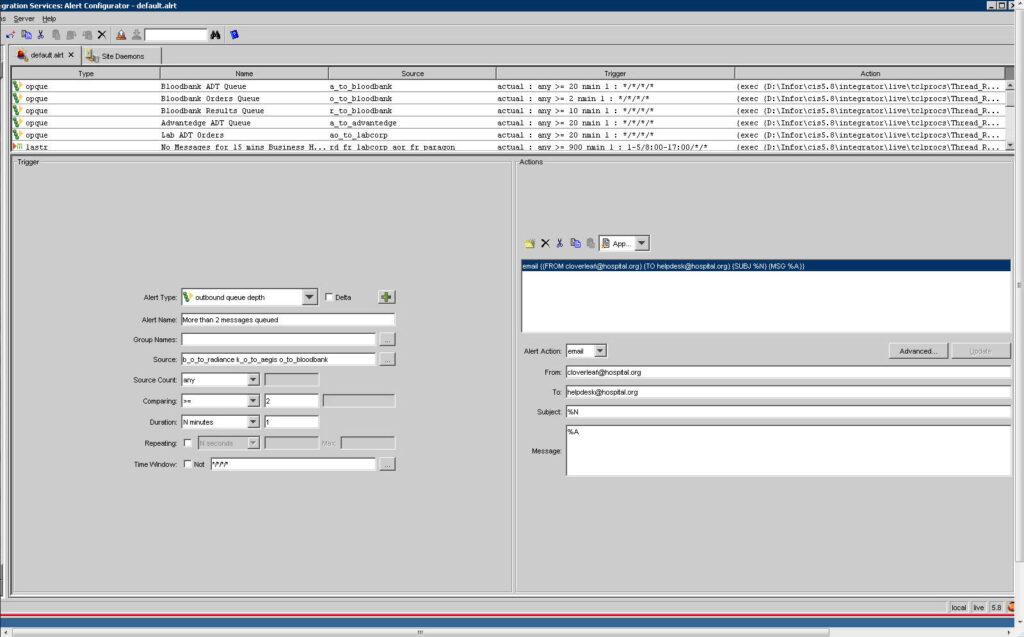 The Infor (formerly Lawson, formerly Healthvision, formerly…) folks have given us some nice enhancements to the alert functionality starting with version 5.8 of Cloverleaf (what I’m describing here is based on Windows version 5.8.5).